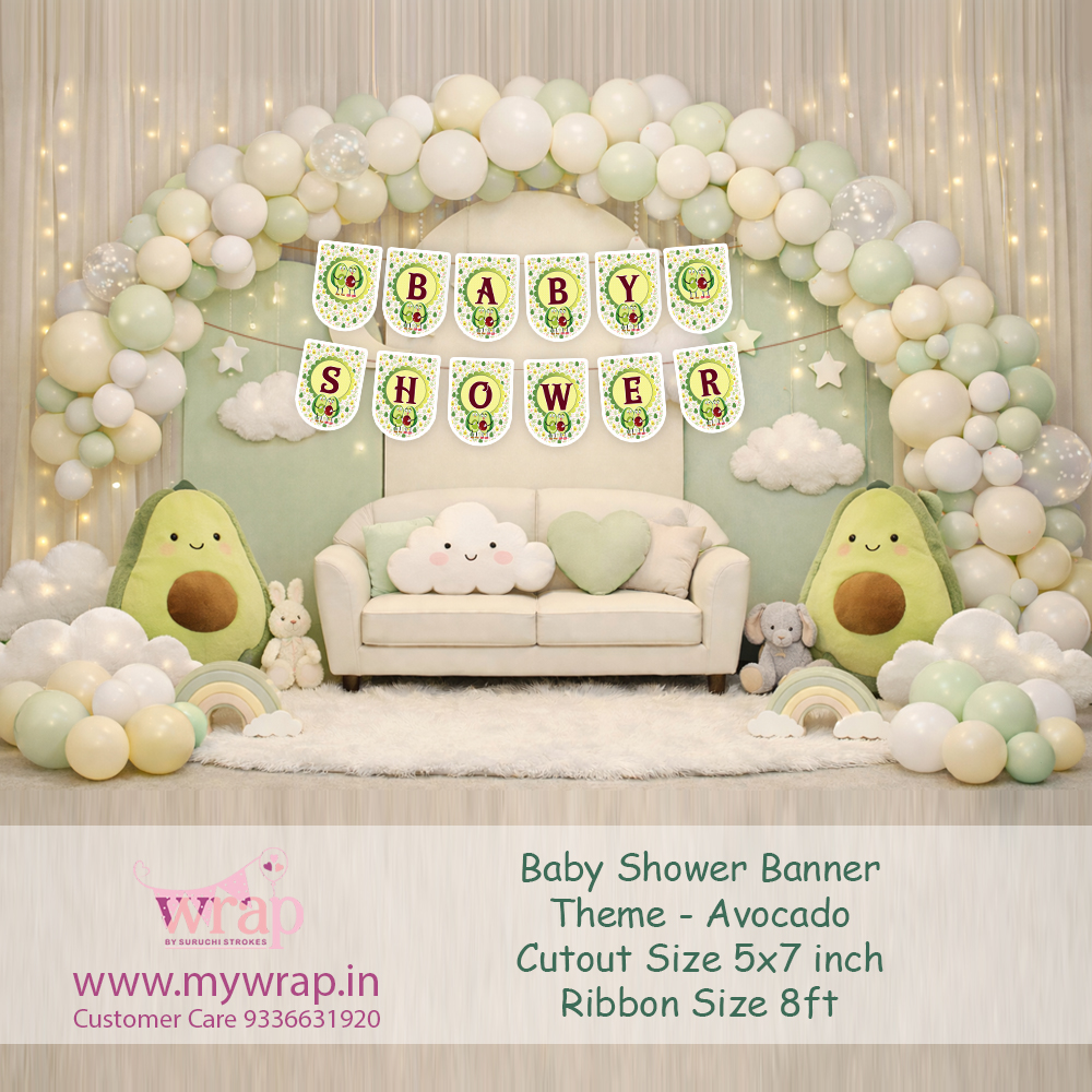 Wrap bySuruchi Strokes® Launch Baby Shower Banner. Celebrate this beautiful new chapter in life as we honor the soon-to-arrive little one and the wonderful parents-to-be. Your tiny are already bringing so much happiness into the world. Add some elegant touch to your celebration with our baby shower theme backdrop incredible product baby shower Banner. A captivating banner featuring vibrant colour and a baby shower message to set the tone for your celebration of your princess and champ. A baby shower avocado theme banner is delightful and vibrant themes that will enhance the overall aesthetic appeal and create an inviting environment for all the young guests. Addition of this theme banner wills definitely a perfect way to create a joyful environment.