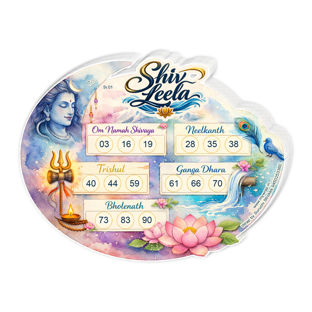 Wrap by Suruchi Strokes® Brings Shivratri Theme Tambola Ticket. Shivaratri special tambola ticket is a beautifully designed festive game card created to enhance the spiritual and celebratory atmosphere of Maha Shivaratri. A Shivaratri tambola ticket themed around Lord Shiva beautifully captures the divine essence of Bholenath and Mahakal, featuring artistic element inspired by sacred temples, glowing, diyas, and elegant Shivling decoration.