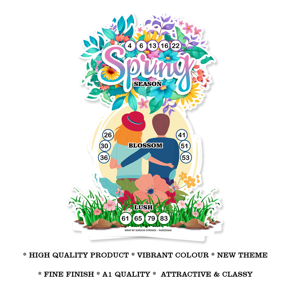 Wrap by Suruchi strokes brings Spring Season Tambola Tickets. Spring time started in February and ended in last of March month. Spring is the right season to enjoy the pleasant climate.Say hello! To Sunny spring and let’s do some activity! We offer you best spring indoor game for girls, boys and ladies; whole family members like mother father son daughter grandparents relatives and also for kids and their friends to play and enjoy spring days. Get ready for a gaming experience like never before with our specially design spring theme tambola tickets. Tambola is popular game of chance that is played with numbered tickets or cards. This is commonly played in spring season, traditional event or function, anniversary, social gatherings, and various parties like kitty party for couple and adult female, Sunday party, bachelorette bachelor party, birthday party or as a form of entertainment. It wills definitely superb game for you as well. Great product for group who wants to get have genuine fun with their parents, children, and partner. These cards will be perfect for sweet young couples to play in the weekend. Have fun with friends and family with these special designed lotto tickets or cards. Also we have various theme tambola like women day, summer season, April theme, Mango theme tambola, March Festive theme tambola like Holi, Ugadi /yugadi, Gudi padwa, Navroz Mubarak.